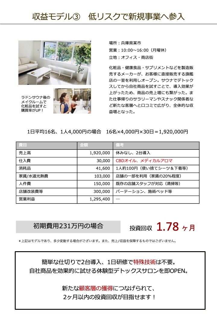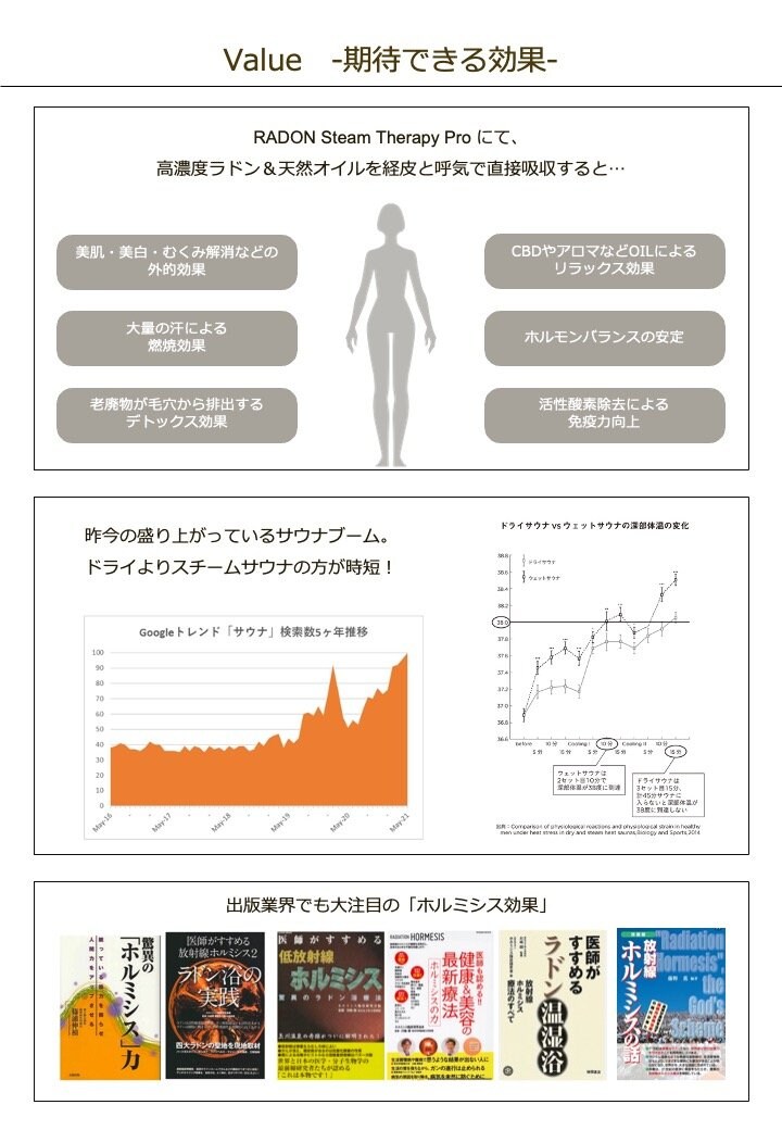 ・RADONsteamは、他の温活との差別化が図れる為、ブランディングしやすい。